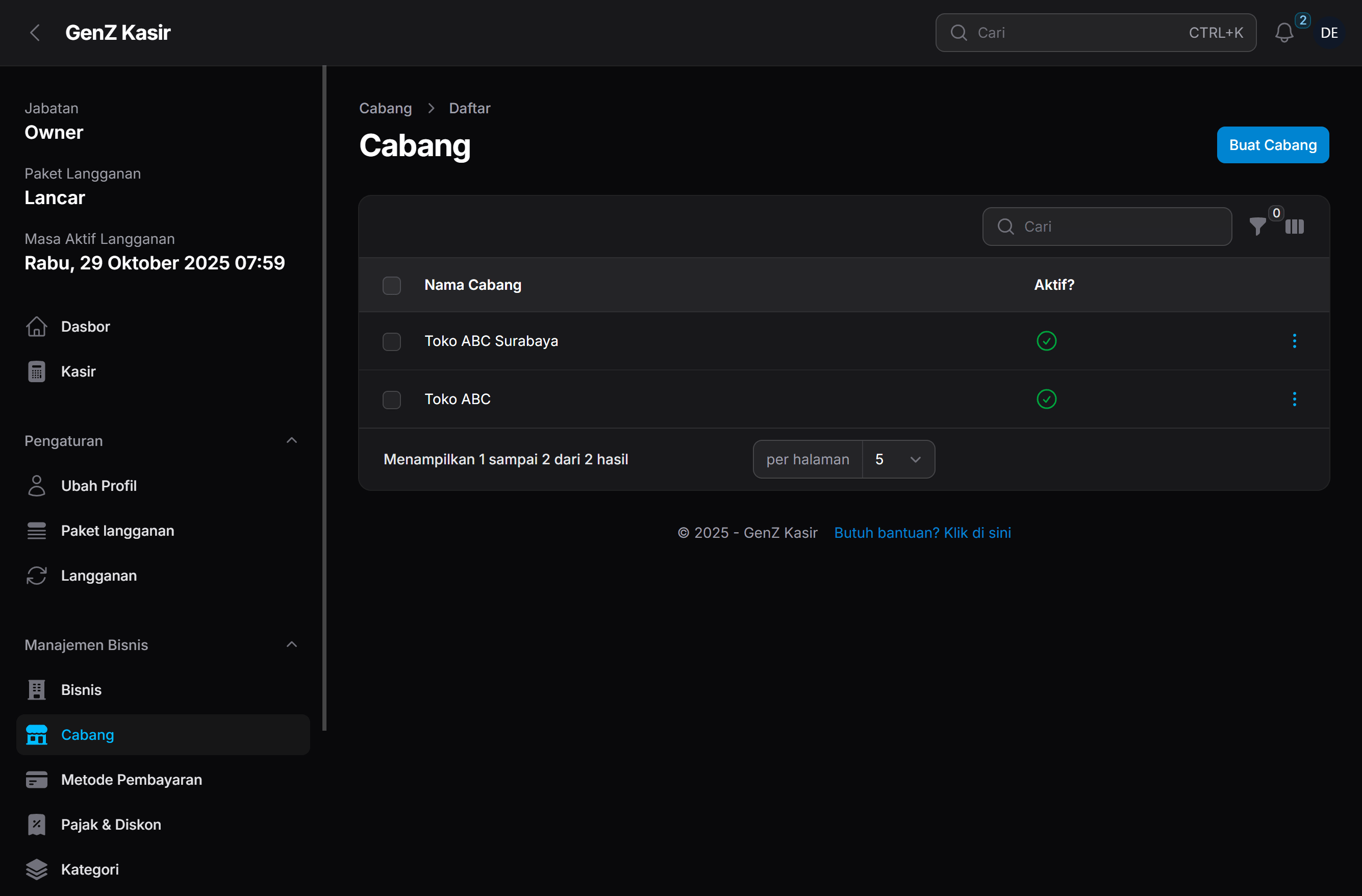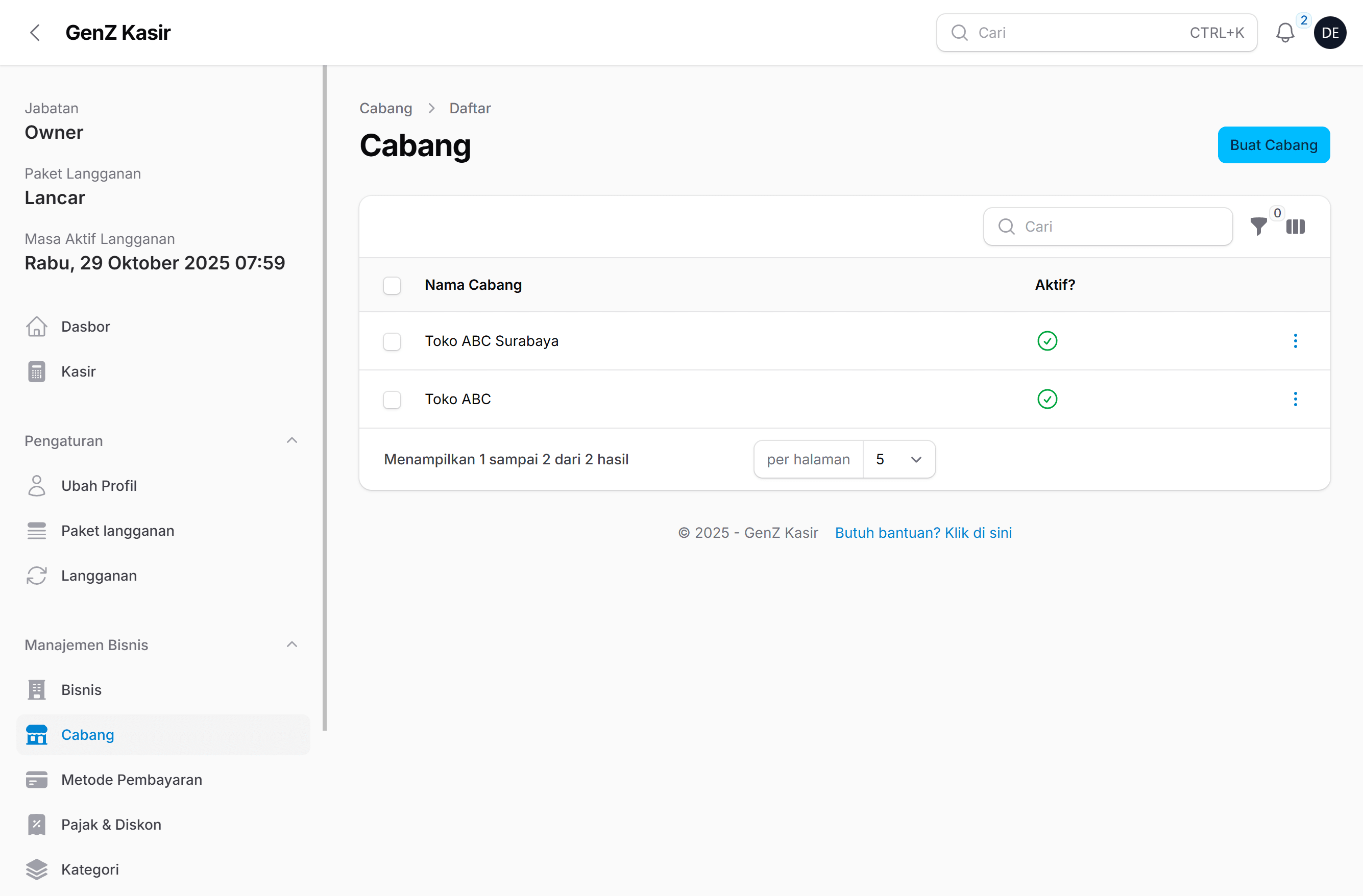 Kelola banyak cabang dalam satu akun