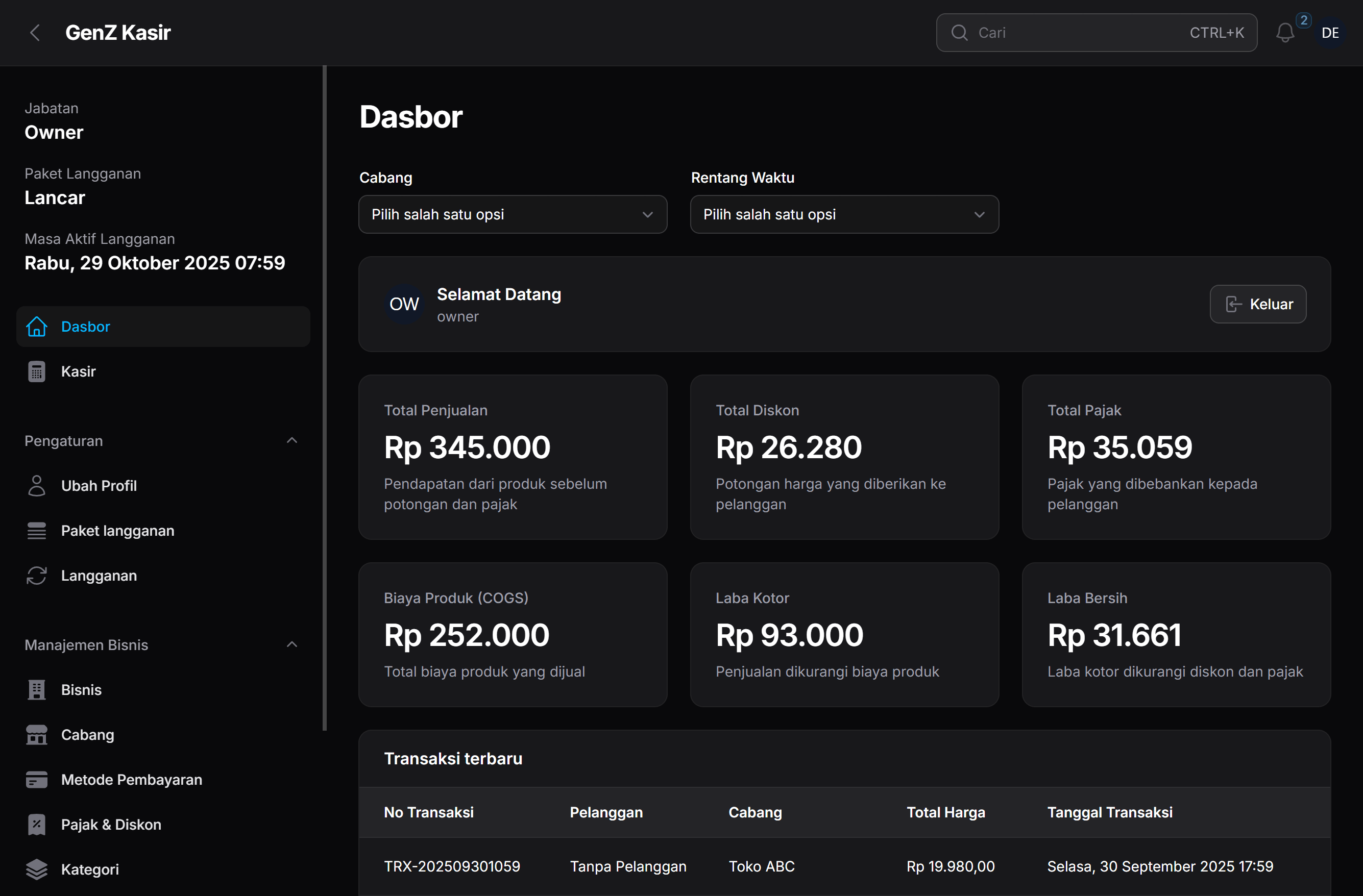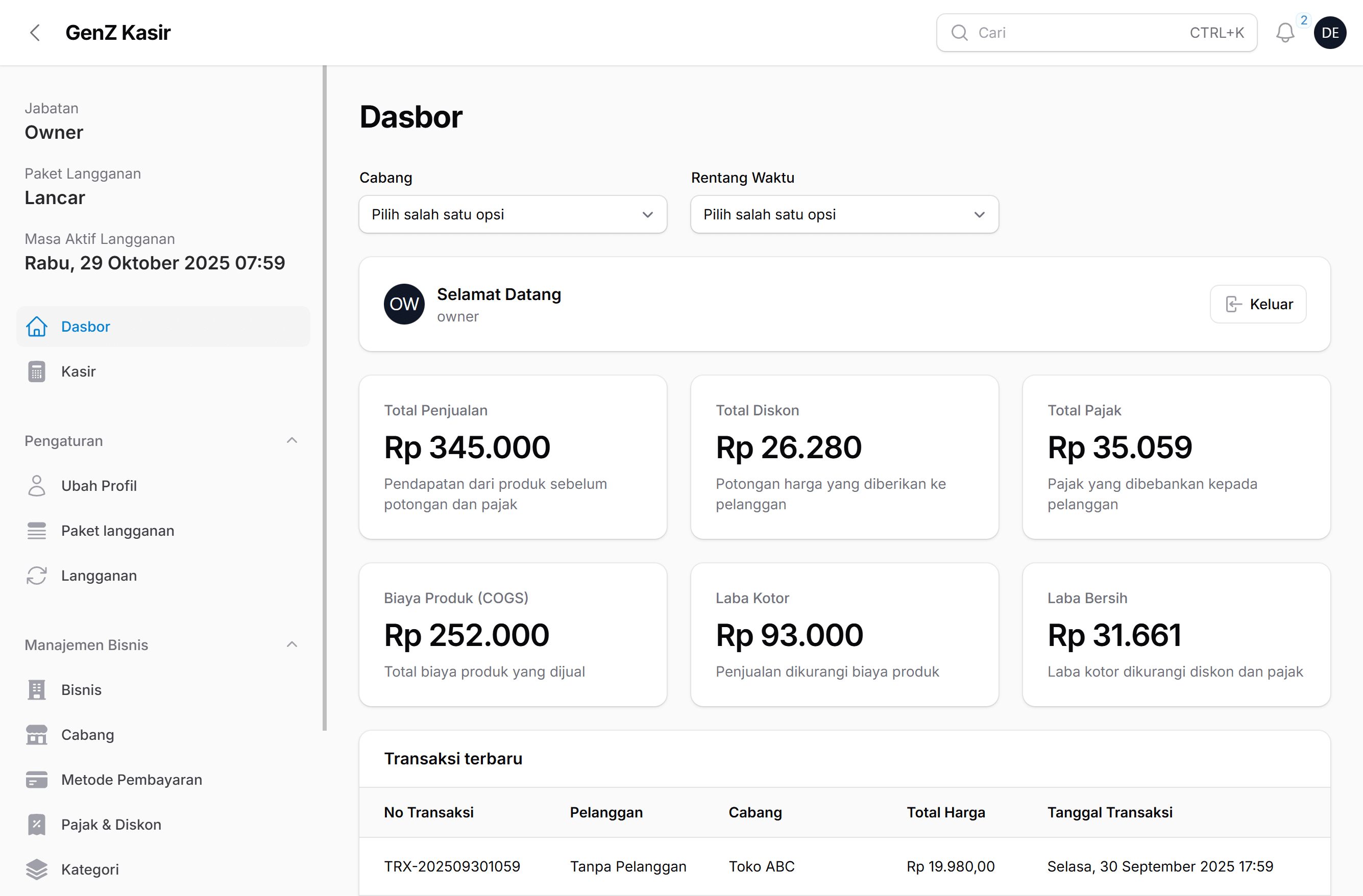 GenZ Kasir adalah aplikasi kasir modern berbasis cloud yang memudahkan pencatatan penjualan, stok, cetak nota, dan laporan bisnis — serta mendukung multi cabang, semua dalam satu aplikasi sederhana.