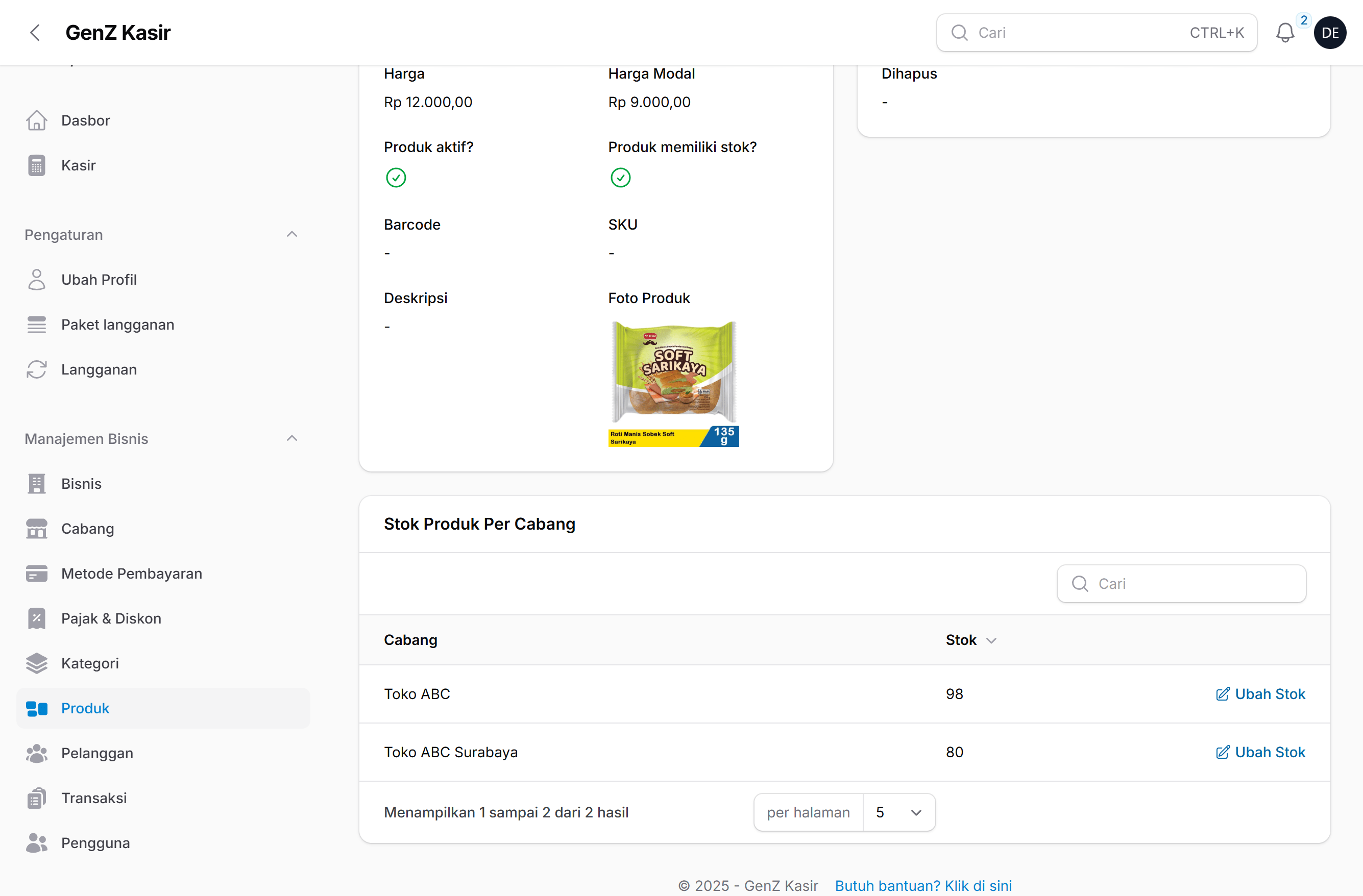 Manajemen Stok Produk per Cabang