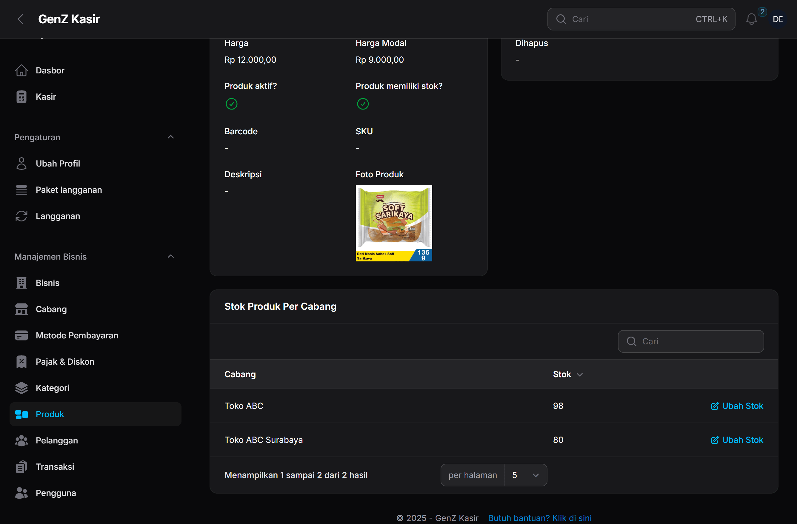 Produk & harga sama di semua cabang, stok terpisah per cabang
