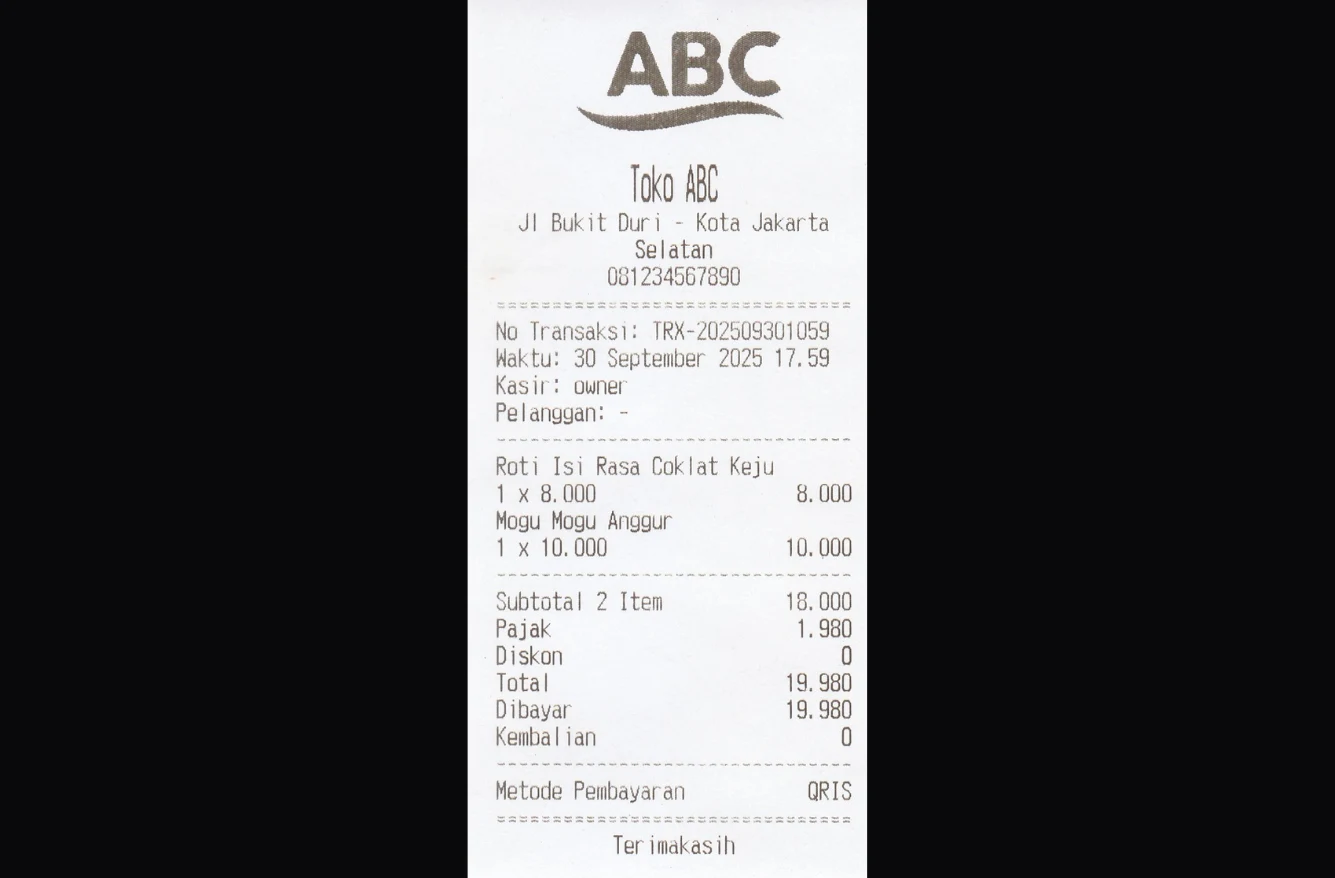 Langsung cetak nota ke printer thermal via Bluetooth tanpa aplikasi tambahan, praktis untuk kasir modern (hanya untuk sistem operasi Windows & Android menggunakan Chrome).